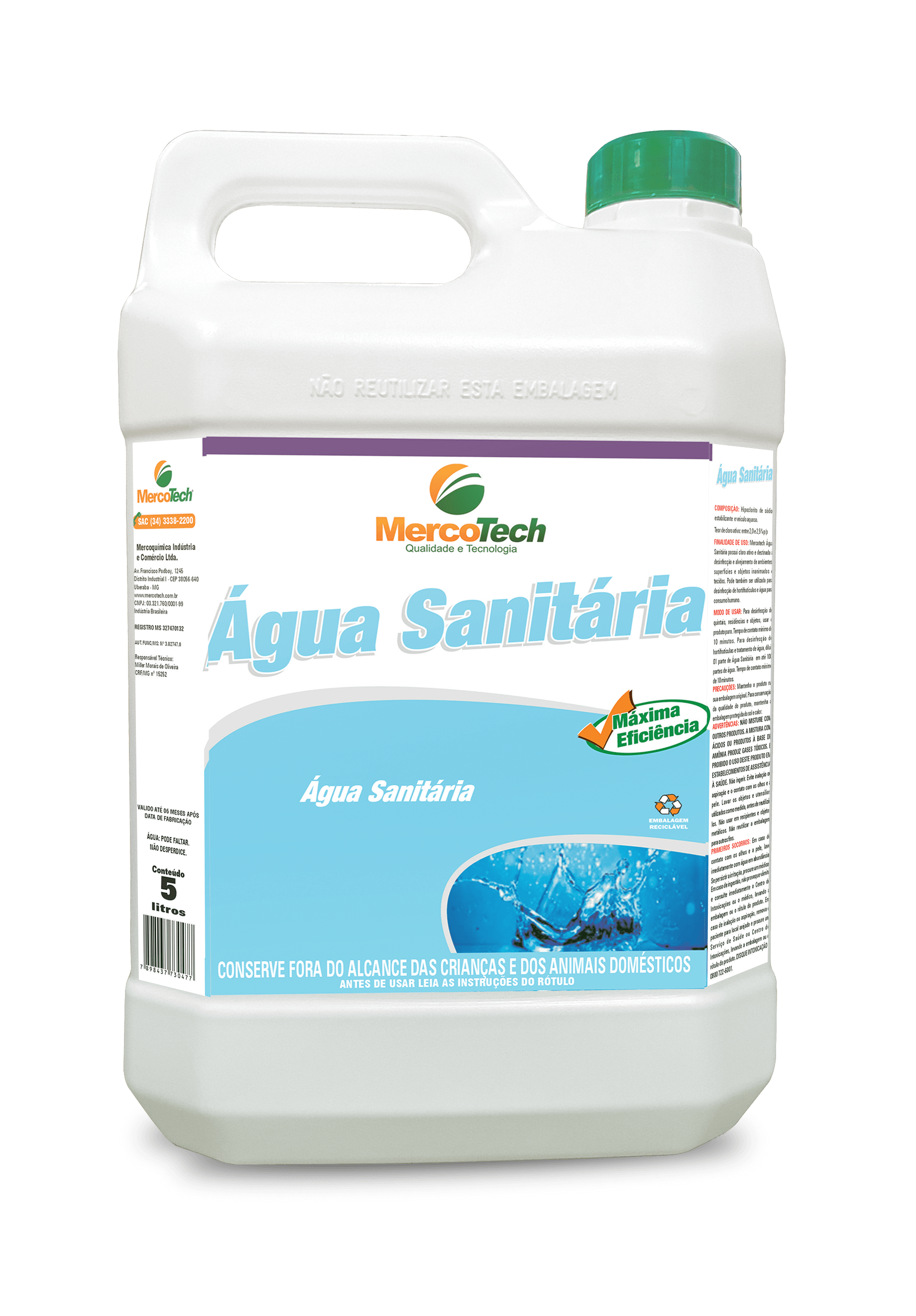 Finalidade: Água sanitária. Embalagem: 5L Estado físico: Líquido...
