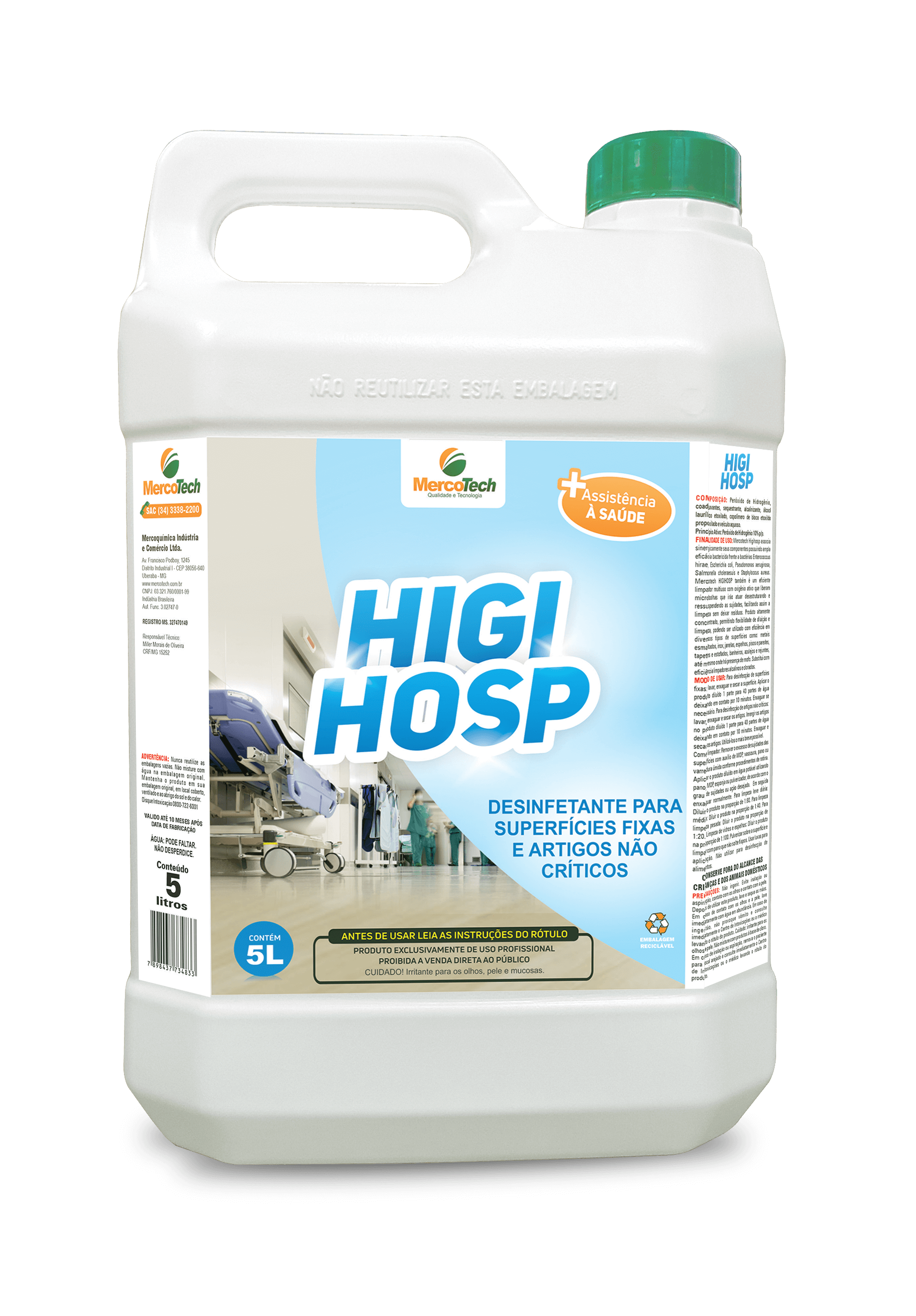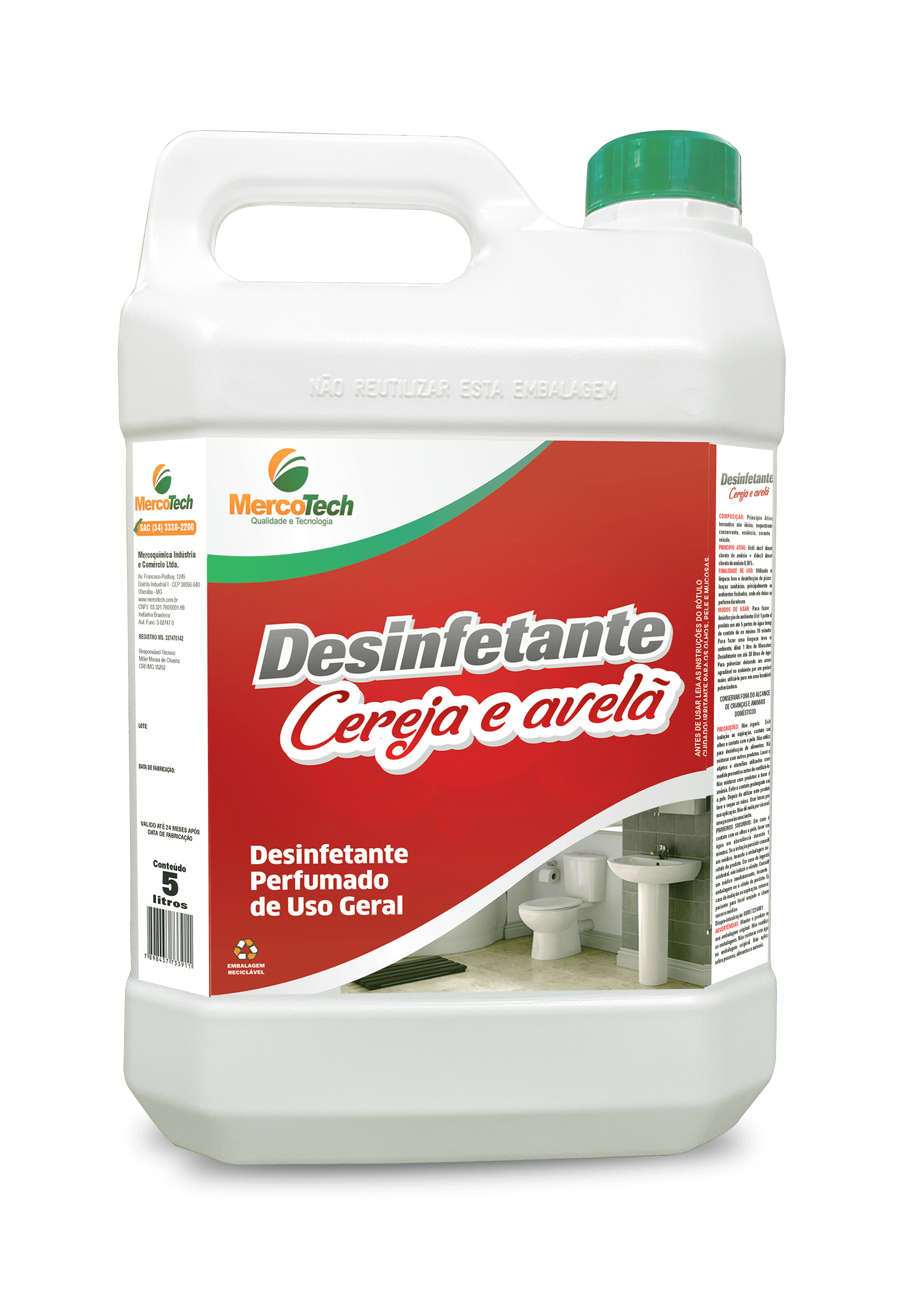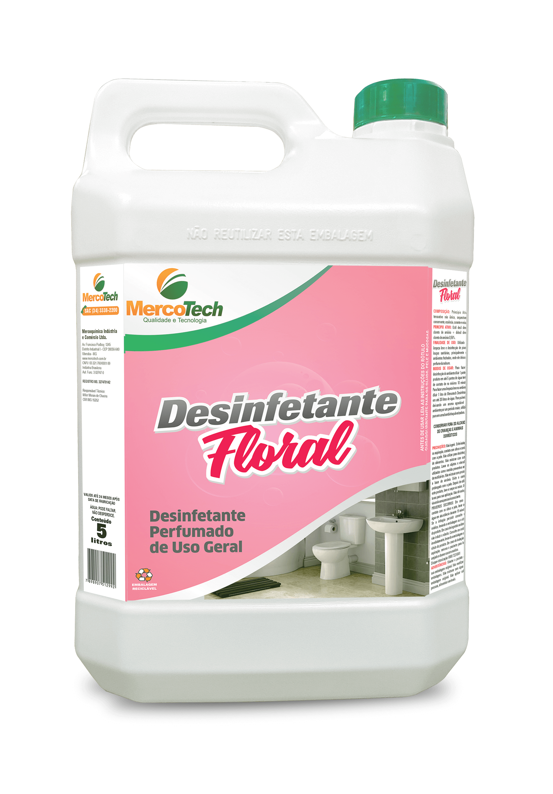 Finalidade: Desinfetante para uso geral. Embalagem: 5L, 20L e 50L Estad...