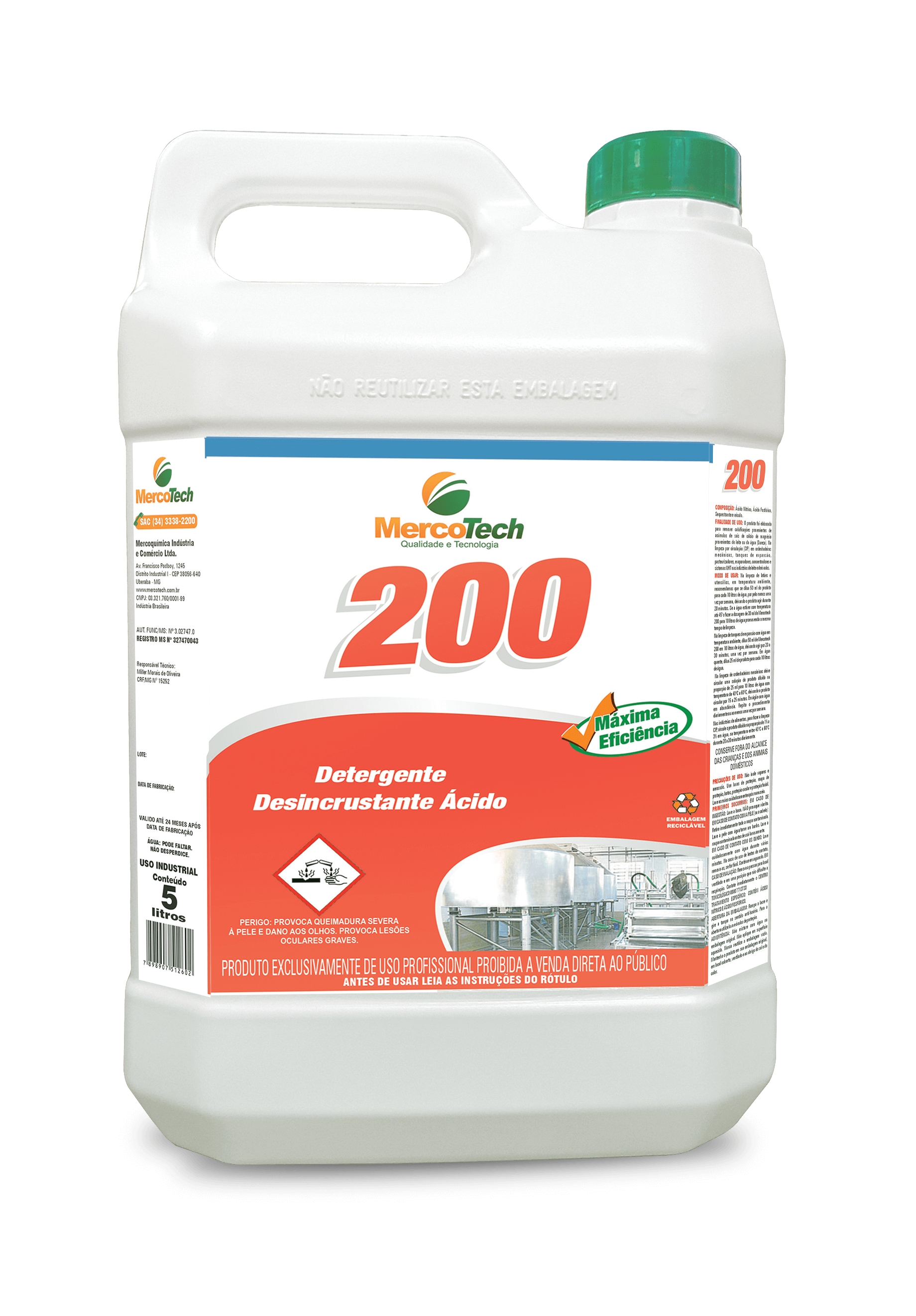 Finalidade: Detergente ácido desincrustante para limpeza CIP. Embalag...