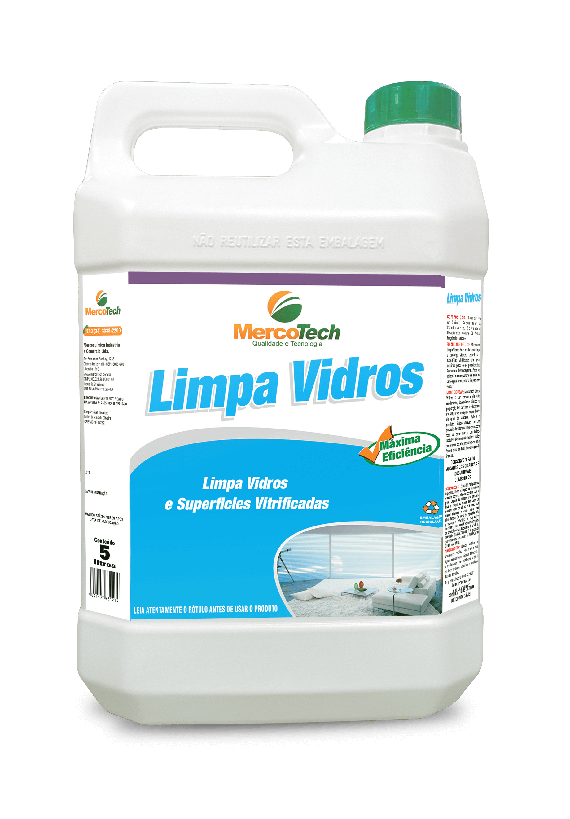 Finalidade: Limpador para vidros e superfícies espelhadas. Embalagem: 5L...