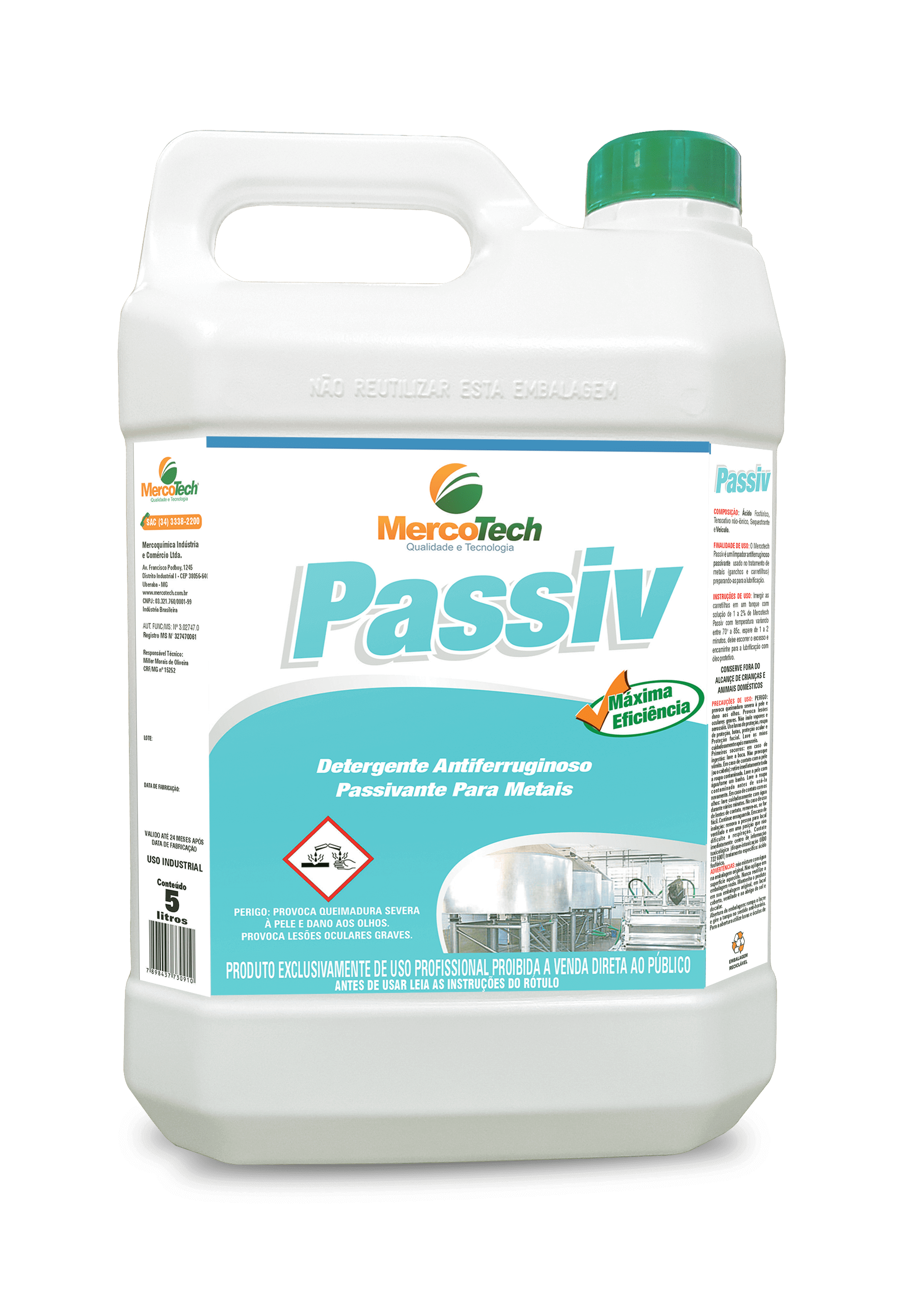 Finalidade: Passivante para carretilhas. Embalagem: 5L, 20L e 50L Est...