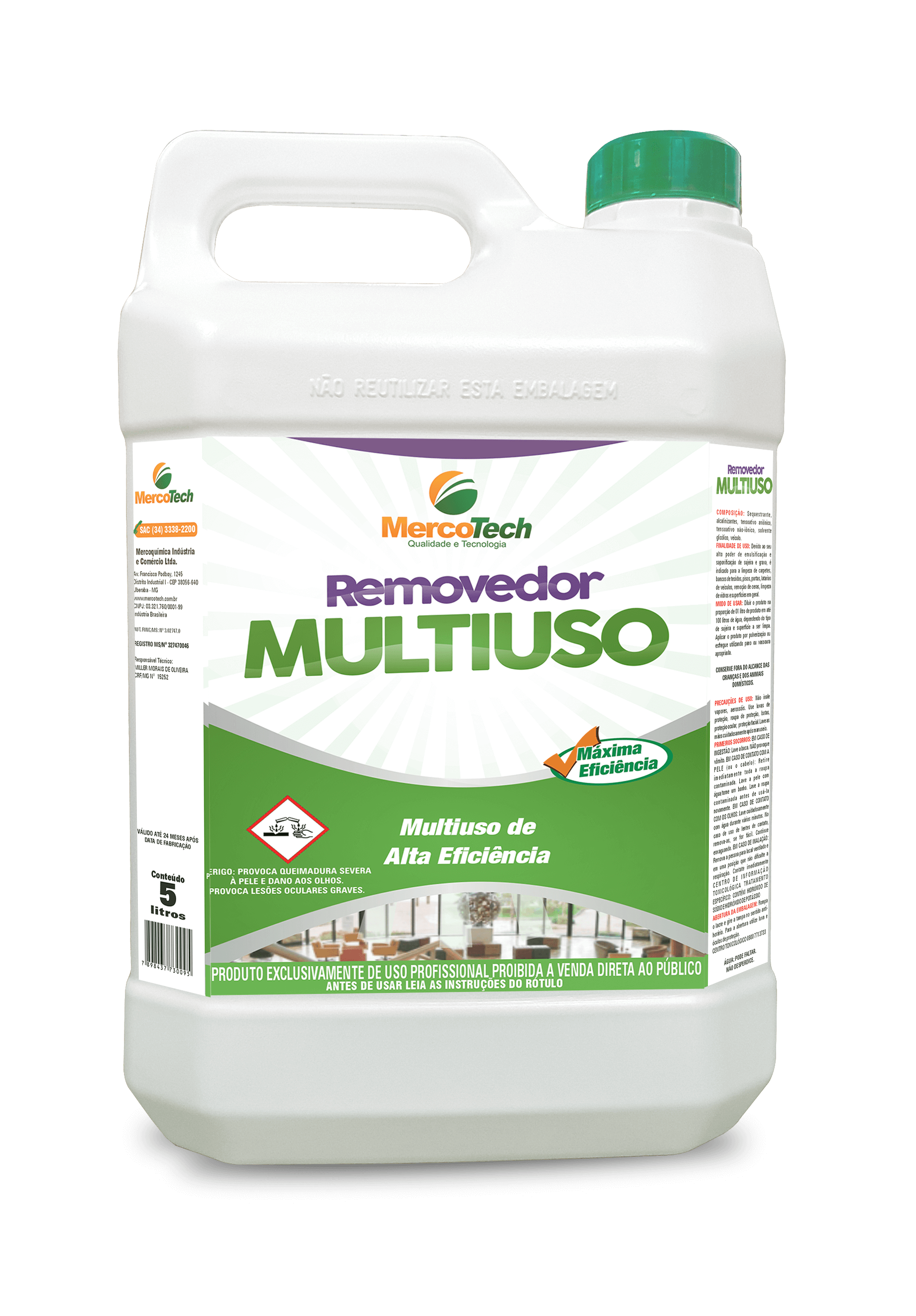Finalidade: Removedor multiuso concentrado. Embalagem: 5L, 20L e 50L Est...