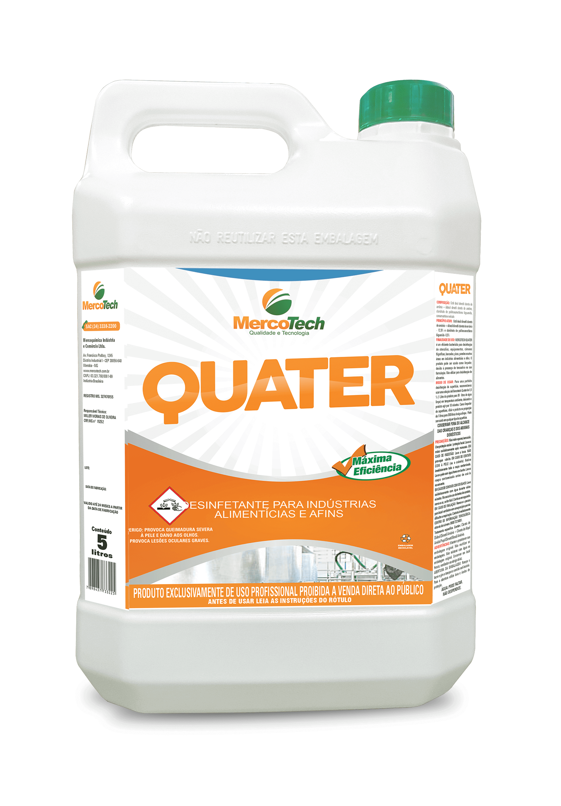 Finalidade: Sanitizante a base de quaternário de amônio para indústrias...