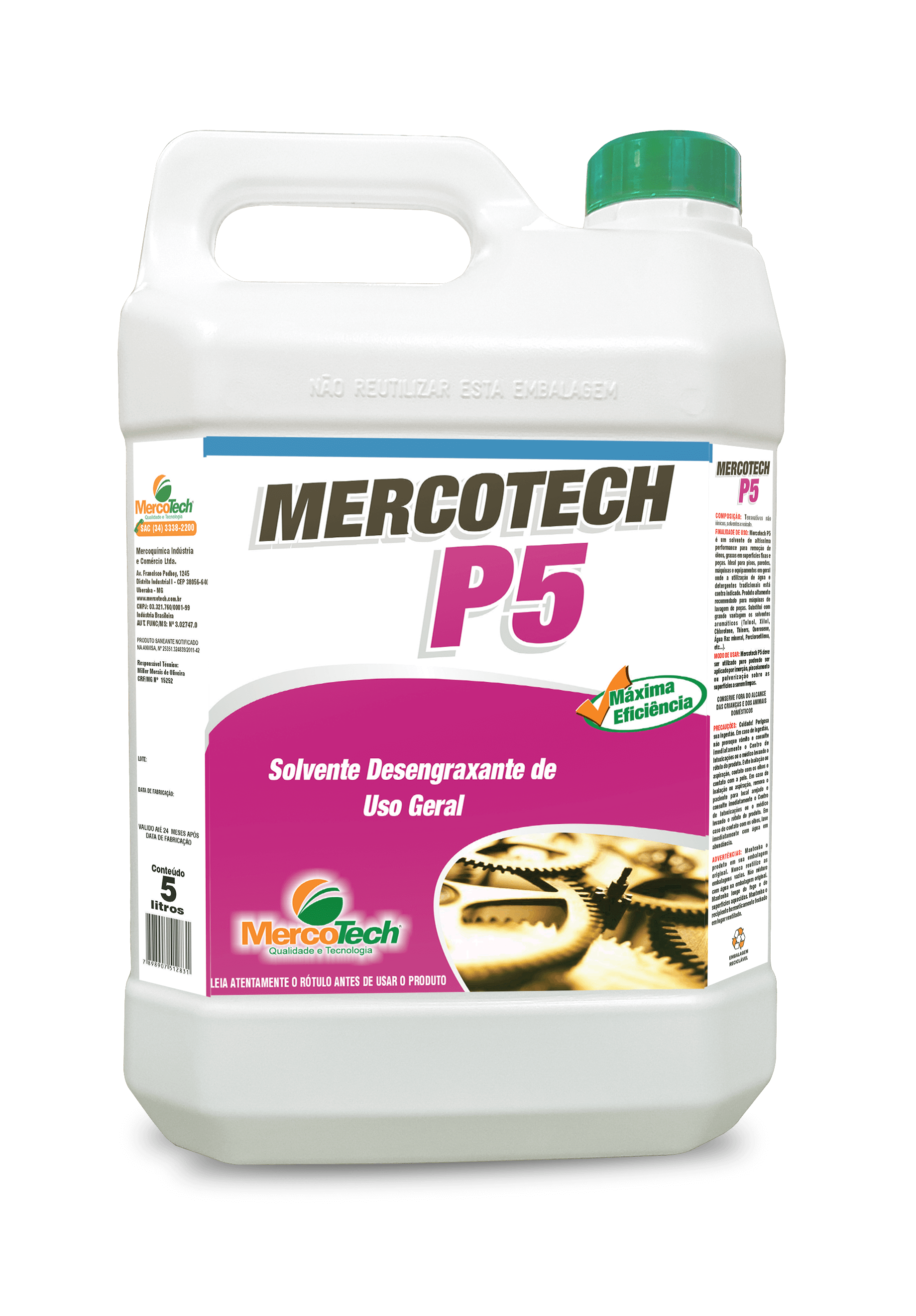 Finalidade: Desengraxante a base de solvente ecológico. Embalagem: 5L ...